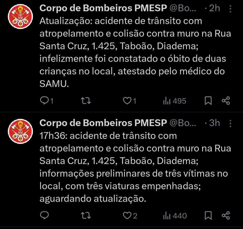 TRAGÉDIA EM DIADEMA: CARRO BATE EM MURO, ATROPELA E MATA DUAS CRIANÇAS; MUITA COMOÇÃO NO LOCAL
