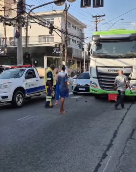TRÂNSITO: CARRO BATE NA LATERAL DE CAMINHÃO-TANQUE NA AV. MARIA SERVIDEI DEMARCHI