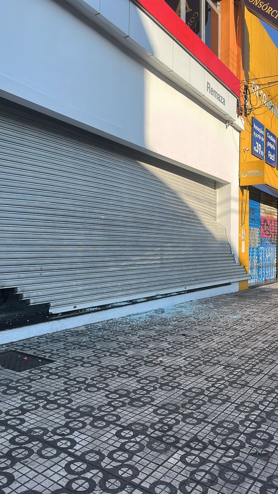 Durante a tentativa de furto, a entrada da concessionária sofreu danos. Os policiais conseguiram recuperar vários itens que estavam com os adolescentes, incluindo capacetes, uma jaqueta e uma moto.