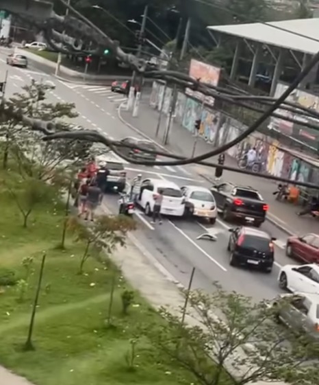 Uma colisão entre ao menos três veículos causou lentidão no fim da tarde deste domingo (16) na Avenida Luiz Pequini, em São Bernardo do Campo. Segundo moradores da região, um Ford Ka branco colidiu com um Ford Ka cinza e um terceiro carro, gerando confusão e transtornos no tráfego da via.