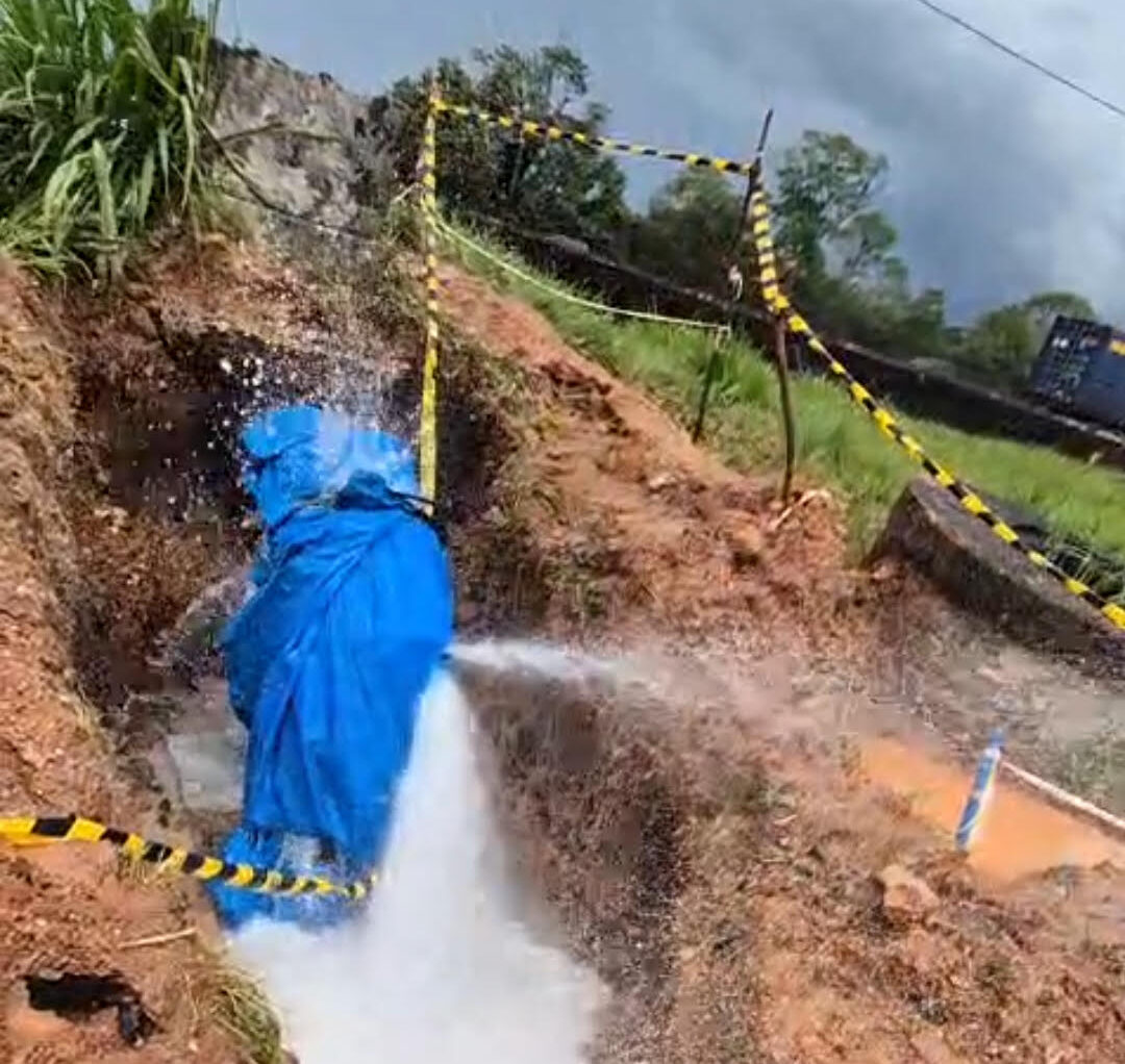 TUBULAÇÃO DA SABESP VOLTA A APRESENTAR VAZAMENTO ENTRE OS KMs 28 E 29 DA VIA ANCHIETA, PRÓXIMO À ENTRADA DO RIACHO GRANDE