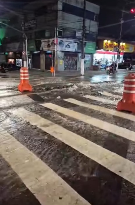 Uma tubulação se rompeu na noite desta quarta-feira (4) na Avenida Humberto de Alencar Castelo Branco, altura do número 3.634, no cruzamento com a Rua Cristiano Angeli, no bairro Alves Dias, em São Bernardo do Campo.