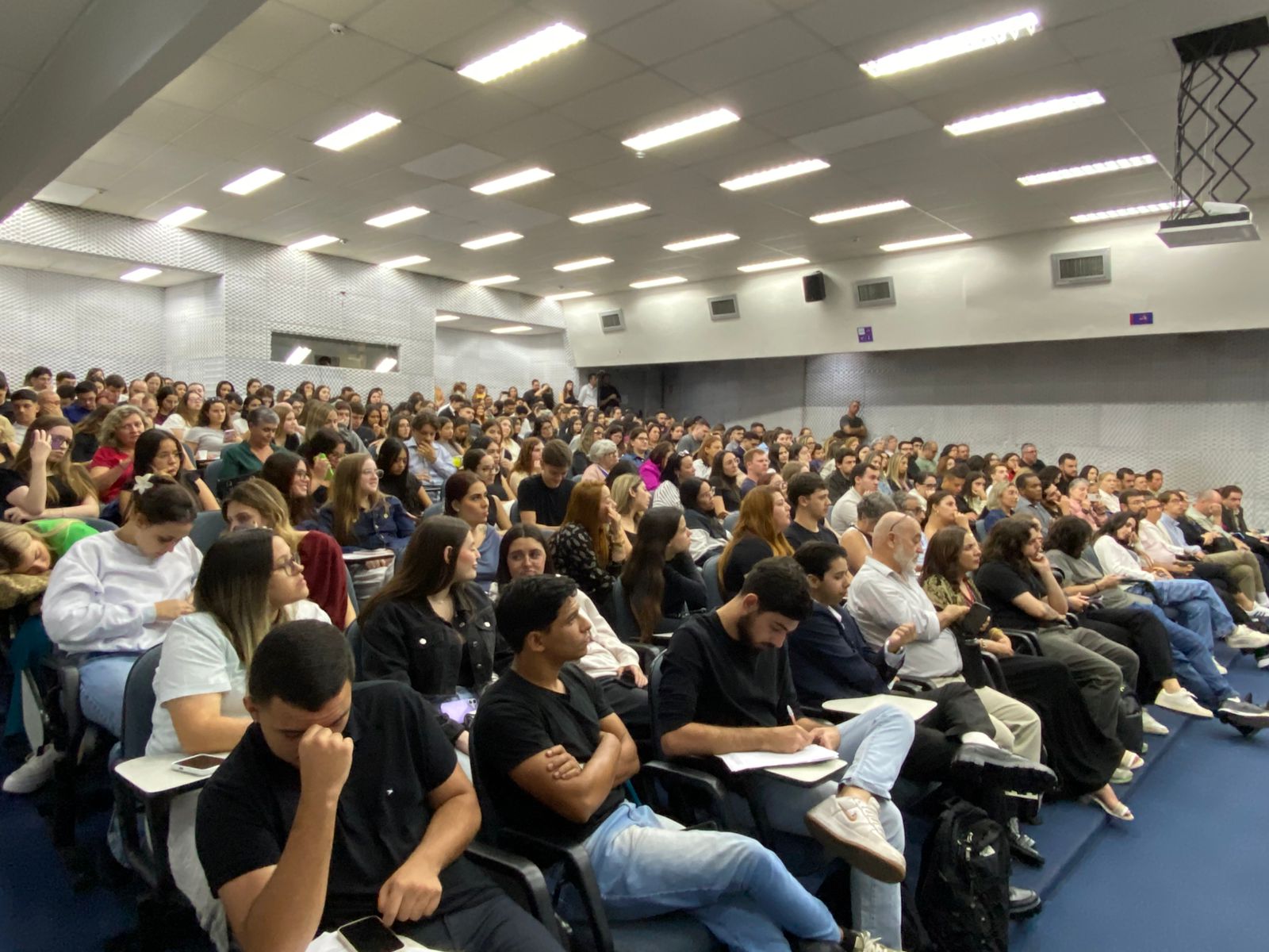 Na última segunda-feira (19), a Universidade Municipal de São Caetano do Sul (USCS), por meio do seu curso de Direito, realizou o seu tradicional Júri Simulado. A atividade, destinada, principalmente, aos estudantes de Direito da Universidade, aconteceu no auditório do campus Barcelona, no período da noite. Mais de 200 (tivemos 310 presentes – com transmissão em duas salas de aula) alunos estiveram presentes na atividade. O julgamento foi baseado no conto “A Cartomante”, de Machado de Assis.