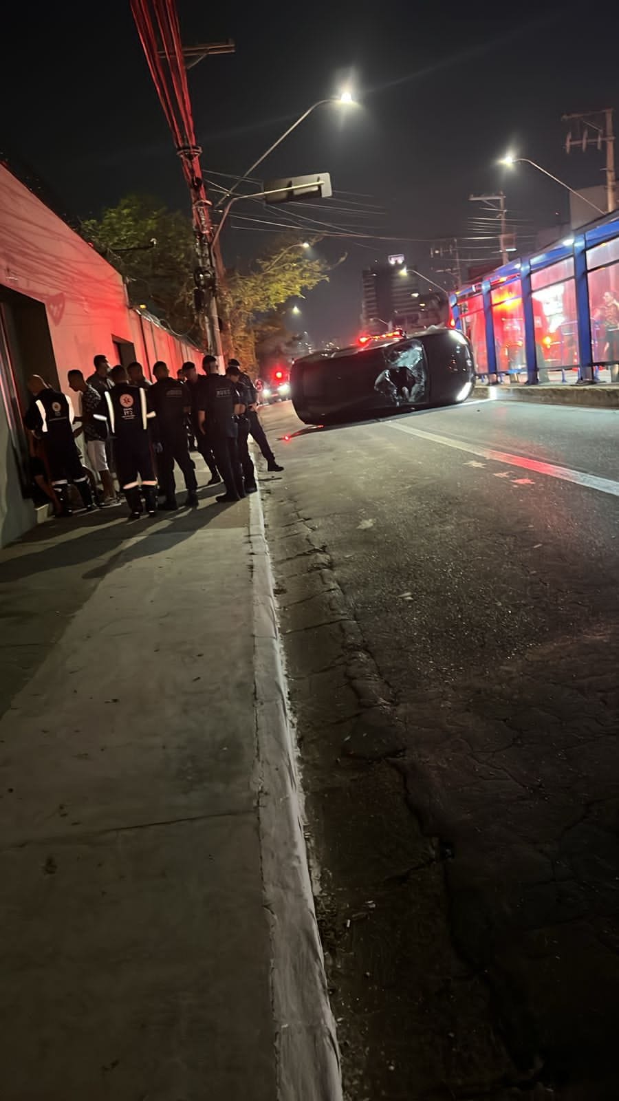 VEÍCULO CAPOTA NA AVENIDA SENADOR VERGUEIRO NA NOITE DE SÁBADO