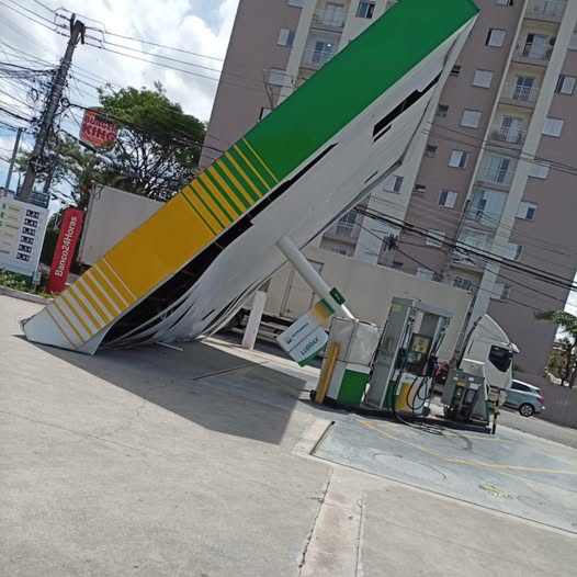 A cobertura de um posto de gasolina foi derrubada pelos fortes ventos que atingiram São Bernardo do Campo nesta quarta-feira (10). O caso aconteceu na Avenida do Taboão, em frente ao Habib’s.
