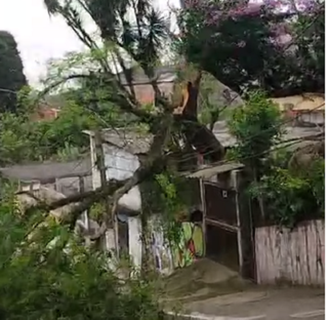 Na Avenida do Taboão, no cruzamento com a Avenida Helvetia, um vídeo mostra o totem de uma farmácia balançando com a força do vento. No Jardim Represa, moradores filmaram árvores sendo sacudidas, e uma árvore chegou a cair na Rua Bela Vista, interditando parcialmente a via.