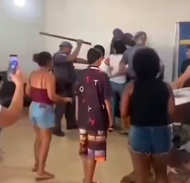 Na confusão, a mãe do rapaz e outra mulher caíram. No vídeo, é possível ver PMs usando cassetes para conter algumas pessoas.