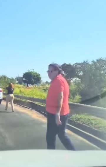Na sequencia, os dois veículos param no acostamento. A passageira do primeiro carro diz para as crianças, que seriam filhas dela e do motorista, ficarem no automóvel: “Fica aí, crianças. Não deixa descer as crianças”. O homem e a mulher descem e vão em direção ao outro carro.