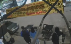 A cena só não foi captada pela câmera porque uma faixa de propaganda instalada na rua impediu a visualização do ocorrido com os dois rapazes.