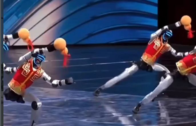As imagens mostram os robôs se apresentando ao lado de artistas humanos em um espetáculo que mistura cultura tradicional chinesa e tecnologia de ponta. Em cenas que lembram filme de ação, as máquinas aparecem executando saltos, giros e sequências sincronizadas de artes marciais.