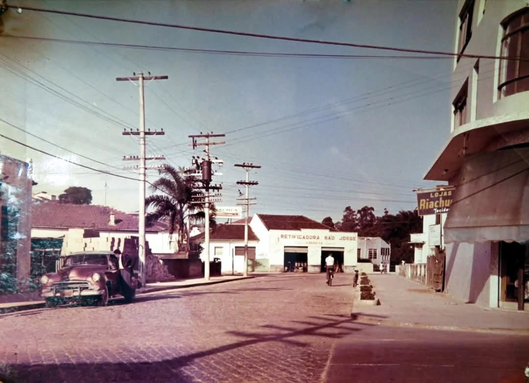 À direita, vê-se parte do Edifício Laura e, ao lado, a primeira loja da Riachuelo na cidade. Anos mais tarde, a loja foi transferida para a Marechal Deodoro, onde antes funcionava o Cine Anchieta. Ao fundo, vê-se a Retífica São Jorge, que foi demolida para dar lugar à Avenida Francisco Prestes Maia.